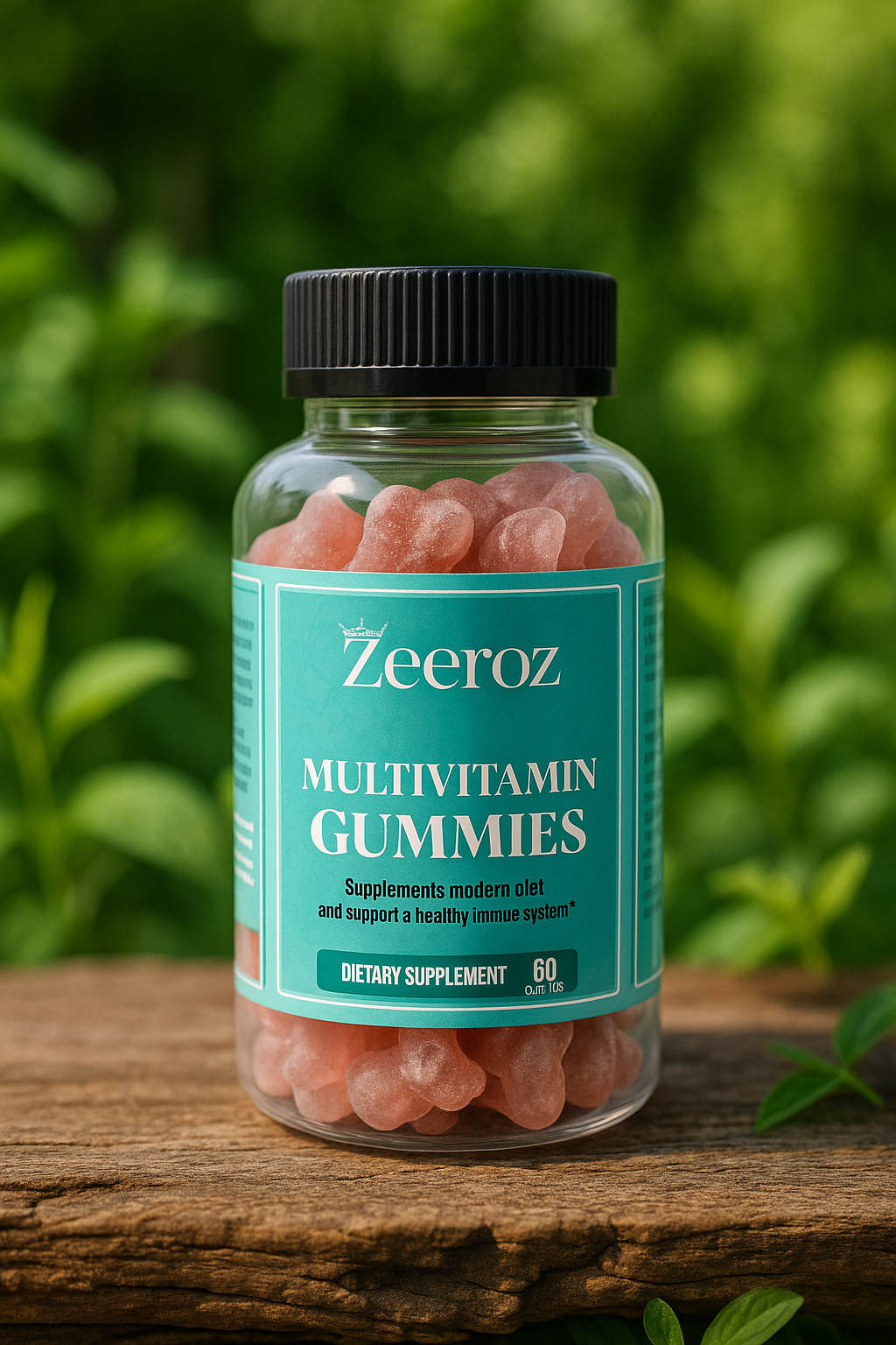 At the core of Zeeroz Multivitamin Gummies is a meticulously crafted blend of essential vitamins and nutrients designed to fortify your health from the inside out. Each gummy delivers a precise, bioavailable dose of Vitamin A, C, D, E, B6, B12, Biotin, Folic Acid, Iodine, Zinc, and Niacin, offering comprehensive support for immune defense, cellular energy, skin health, and cognitive performance.